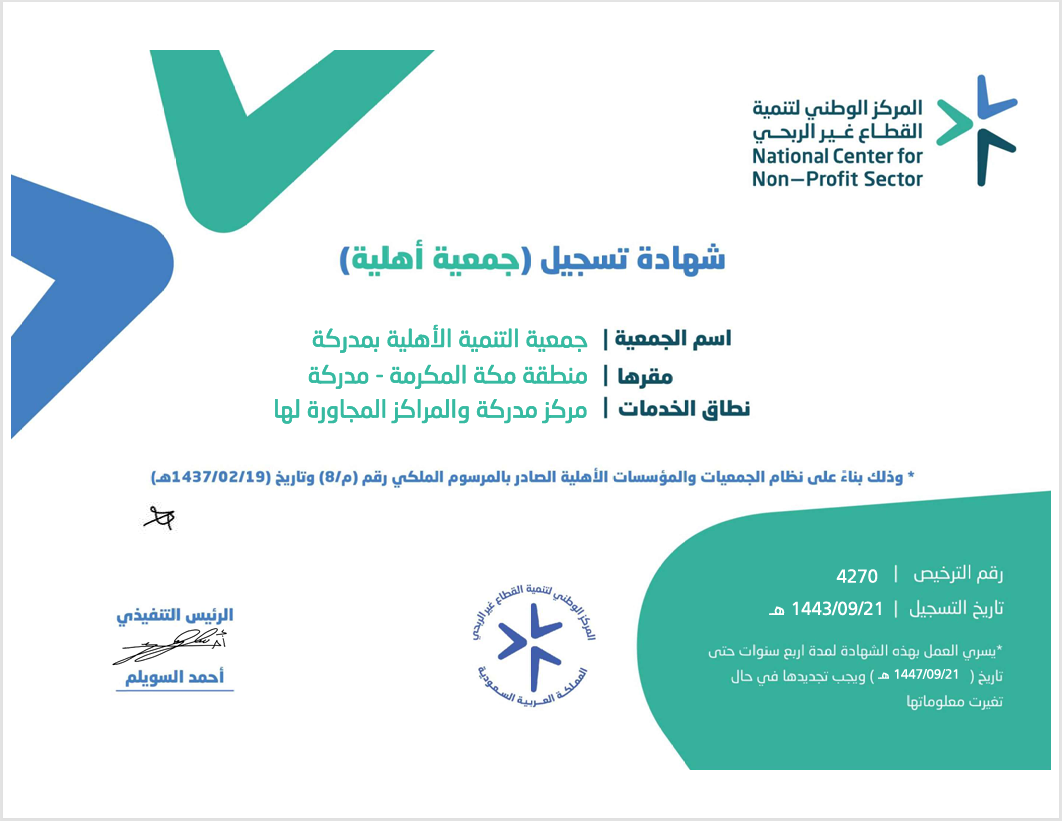 جمعية تنمية تسعى في تنمية المجتمع وتأهيله تأسست عام 1443هـ وتقدم خدماتها للفئات التالية: (الأسر المنتجة – الأسر – الشباب – الفتيات – الأطفال – طلاب وطالبات – كبار السن – الموظفون – المتطوعون)